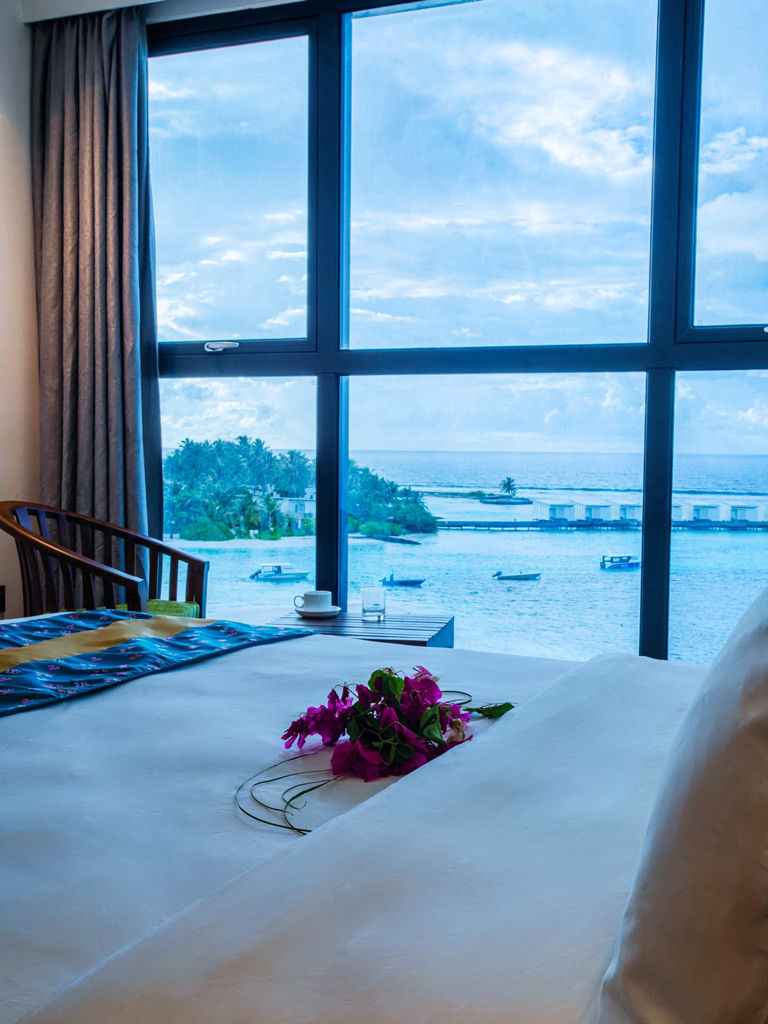 La Camera Deluxe Vista Mare, di 18 metri quadrati, offre un design moderno, pavimenti in parquet e un bagno annesso. Le ampie finestre offrono una splendida vista sull'isola, mentre alcune camere offrono una vista sull'oceano. Il minibar con bevande analcoliche e spuntini aumenta il comfort del vostro soggiorno.